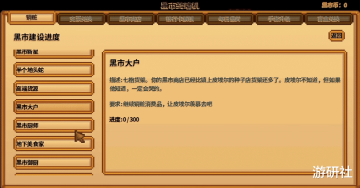 《星露谷物语》有着丰富的社区模组。我曾经最感兴趣的一个是“扇鱼一巴掌”,没什么特殊用处,但是在钓鱼红温的时候非常解气。 另一个就是前段时间出现的“偷菜模组”。 玩家可以在花盆、菜园甚至是出货箱中“顺手牵羊”,甚至在一定概率下,可以偷走NPC的金币,问他们“借点小钱”,或者直接偷走他们喜欢的物品。如果把这些赃物再送回给NPC,还会触发一些额外的对话。 当盗贼等级提升到一定阶段后,玩家还可以解锁黑市终端,用来销赃、倒卖物品,甚至购买一些稀有道具。 这听起来已经能给和谐淳朴的鹈鹕镇带来足够大的冲击了...