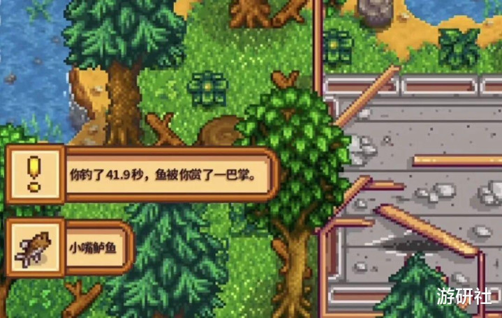 《星露谷物语》有着丰富的社区模组。我曾经最感兴趣的一个是“扇鱼一巴掌”,没什么特殊用处,但是在钓鱼红温的时候非常解气。