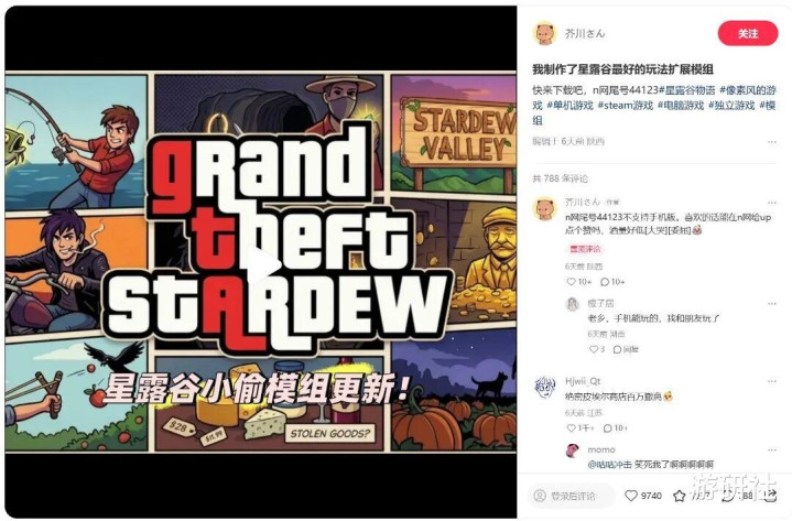 《星露谷物语》有着丰富的社区模组。我曾经最感兴趣的一个是“扇鱼一巴掌”,没什么特殊用处,但是在钓鱼红温的时候非常解气。 另一个就是前段时间出现的“偷菜模组”。 玩家可以在花盆、菜园甚至是出货箱中“顺手...